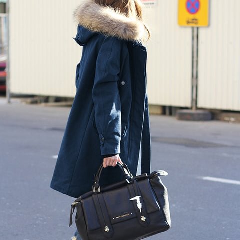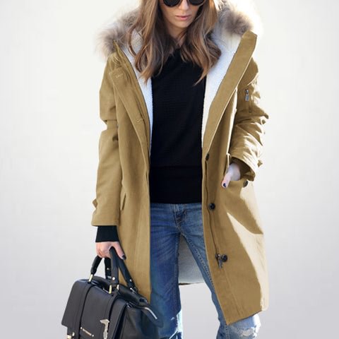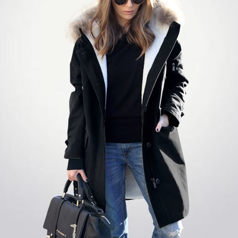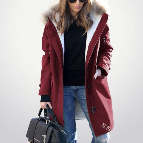 Ciepła kurtka wiatrówka damska z kapturem i futrzanym kołnierzem w nowym stylu
