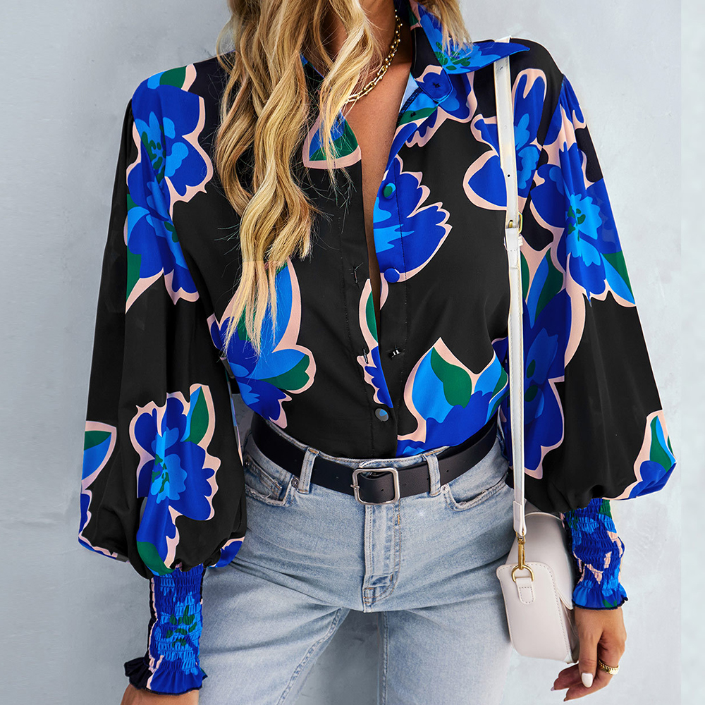Damska czerwona czarna koszula w kwiaty