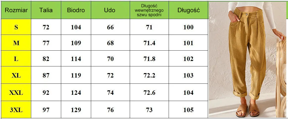 - 1 * Damskie proste spodnie sztruksowe z wysokim stanem