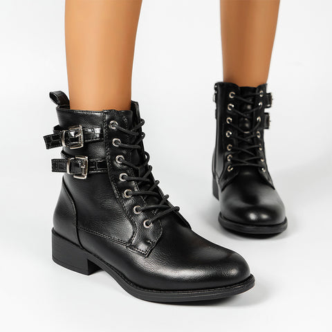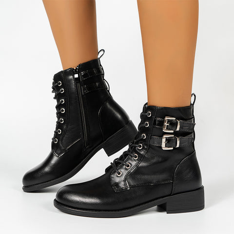 - 1 * Jesienne i zimowe nowe buty damskie sznurowane klamry do paska modne buty