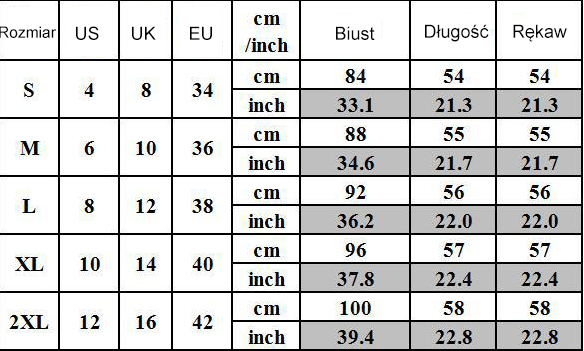 - Proszę zapoznać się z tabelą rozmiarów poniżej przed złożeniem zamówienia, dziękuję!