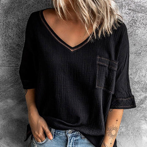 Modne jednokolorowe krótkie rękawy z dekoltem w szpic