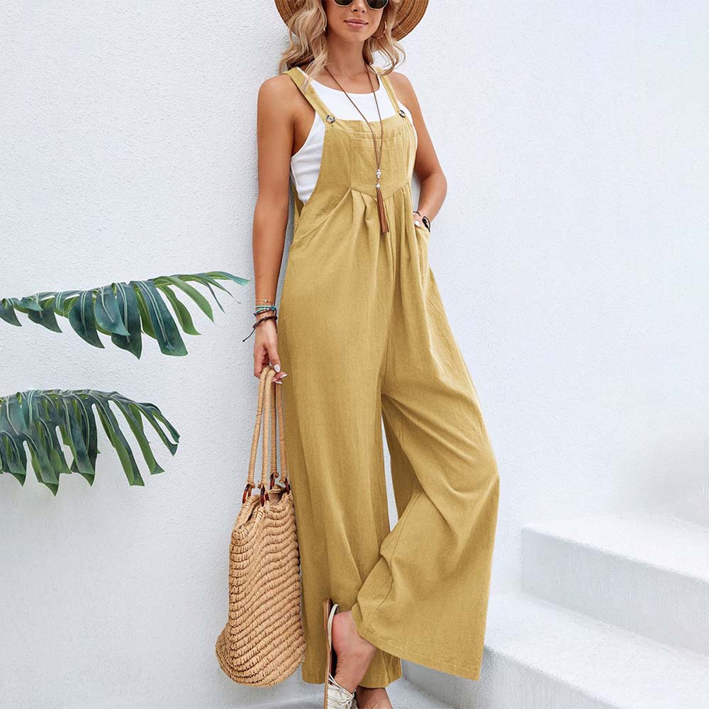 - Cechy: kombinezon bez rękawów zaprojektowany w stylu retro. Spodnie są proste, z wysokim stanem i niskim stanem, bardzo luźne i wygodne; ozdobne przednie kieszenie i guziki na szelkach są ozdobione, dzięki czemu są bardziej swobodne i designerskie.
